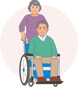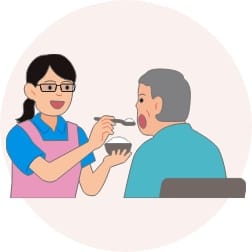 当施設まで通っていただきます。リハビリテーションや食事、入浴、送迎などのサービスを提供し、安心して在宅生活が続けられるように支援します。